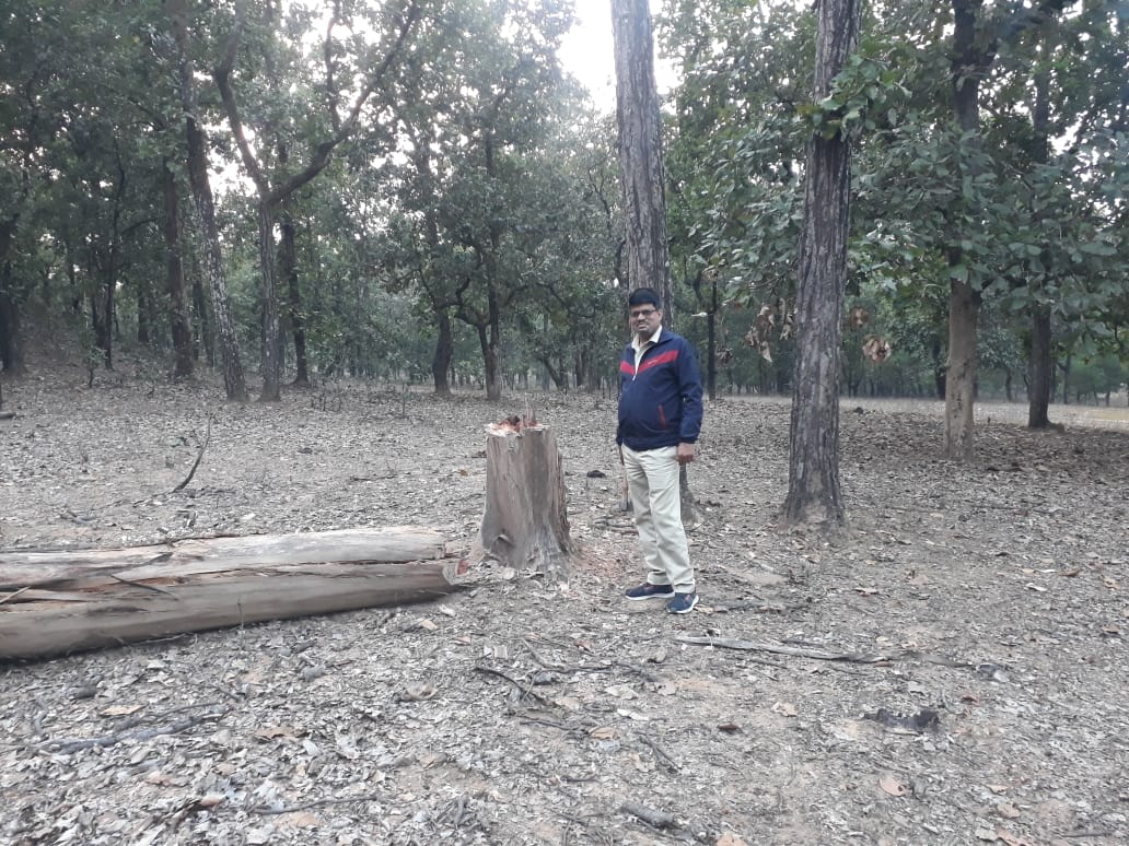 कोरिया – बीते गुरूवार को बहराशि रेंजर और वनरक्षक ने अपने परिक्षेत्र में भ्रमण के दौरान वापसी में सायंकाल कार्यालय लौटते समय देखा कि मनेन्द्रगढ़-जनकपुर मुख्य मार्ग के किनारे झुलगी बीट के जंगल में दो ग्रामीण टांगा से पेड़ को काटकर गिरा दिए हैं। रेंजर इंद्रभान पटेल और वनरक्षक बाल्मिक तिवारी के द्वारा तत्काल दोनो ग्रामीणों को दौड़ाकर पकड़ने का प्रयास किया गया परंतु वह टांगा छोडकर जंगल के अंदर भाग गए। रेंजर के आदेश पर वनरक्षक द्वारा टांगा को जप्त कर लिया गया। रेंजर ने बताया कि गाज मारा पेड लगा रहा है। सरई का पेड है। उन्होने बताया कि अपने परिक्षेत्र में हमारा भ्रमण निरंतर जारी रहता है।