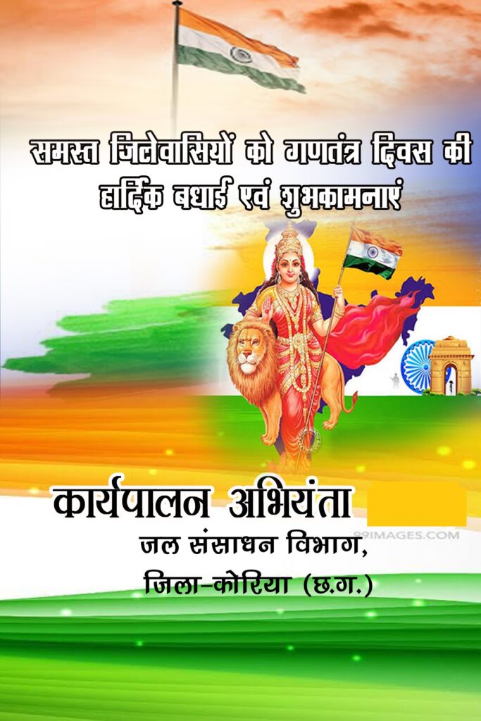 कार्यपालन अभियंता जल संसाधन विभाग जिला कोरिया की ओर से समस्त क्षेत्रवासियों को गणतंत्रता दिवस की हार्दिक शुभकामनाएं