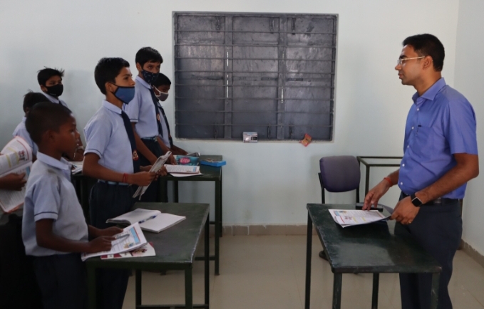 स्वामी आत्मानंद स्कूल में कलेक्टर ने कक्षा सातवीं के बच्चों के साथ पढ़ा संस्कृत का पाठ