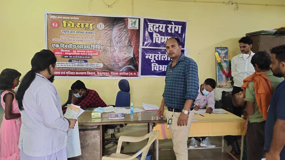 राज्य शासन से प्राप्त निर्देश व कलेक्टर कोरिया श्री कुलदीप शर्मा के मार्गदर्शन में राष्ट्रीय बाल स्वास्थ्य कार्यक्रम (चिरायु) अंतर्गत कोरिया जिले में चिरायु शिविर का आयोजन सामुदायिक भवन विकासखण्ड खड़गवां में किया गया। जिले में कार्यरत 05 विकासखण्ड के 12 चिरायु दलों द्वारा विभिन्न कैटेगरी अंतर्गत चिन्हांकित बच्चो (0 से 18 वर्ष) के स्वास्थ्य परीक्षण एवं उपचार हेतु आयुष्मान भारत से अनुबंधित रामकृष्ण केयर हॉस्पिटल रायपुर के बाल हृदय रोग विषेशज्ञ (कार्डियोलॉजिस्ट), मस्तिष्क रोग विषेषज्ञ (न्यूरोलॉजिस्ट) एवं जिला स्तरीय विषेशज्ञ चिकित्सक अस्थि रोग, शिशु रोग, नेत्र रोग, ईएनटी, दंत चिकित्सक, फिजीयोथेरेपीस्ट, ऑडियोलॉजिस्ट, ऑडियोमैट्रिक सहायक द्वारा 74 बच्चों का स्वास्थ्य परीक्षण व उपचार किया गया। कैम्प में 0 से 18 वर्ष के ऑगनबाड़ी, स्कुल में पंजीकृत बच्चे जिनमें न्यूरोलाजी 07, जन्मजात हृदय रोग 13 मरीज, पैर की विकृति के 01 मरीज, क्लेफ्ट लीप एवं पैलेट 01, जन्मजात मोतियाबिंद 01, नेत्र रोग 10 मरीज, अस्थि रोग 02, दन्त रोग 03, चर्म रोग 04, कुपोषित बच्चे 16 एवं अन्य मरीज 16, मरीजो का परीक्षण एवं उपचार तथा उच्च संस्था में जॉच व आपरेशन हेतु चिन्हांकित किया गया है। जिन बच्चों का सर्जरी हेतु चिन्हांकित किया गया है उनका अनुबंधित अस्पताल में स्वास्थ्य विभाग द्वारा निःशुल्क इलाज कराया जायेगा। विधायक डॉ. विनय जायसवाल ने शिविर को संबोधित किया, उन्होंने कहा कि राज्य शासन द्वारा चिकित्सा संस्थाओं और स्वास्थ्य सुविधाओं को बेहतर बनाने के लिये स्वास्थ्य केन्द्रों का विस्तार किया जा रहा है। कार्यक्रम को डाॅ. प्रिंस जायसवाल, जिला सलाहकार ने भी संबोधित किया। उन्होंने कहा की स्वास्थ्य विभाग द्वारा जिले के समस्त बच्चों का बेहतर स्वास्थ्य सुविधा उपलब्ध कराने के लिये लगातार प्रयास किया जा रहा है।