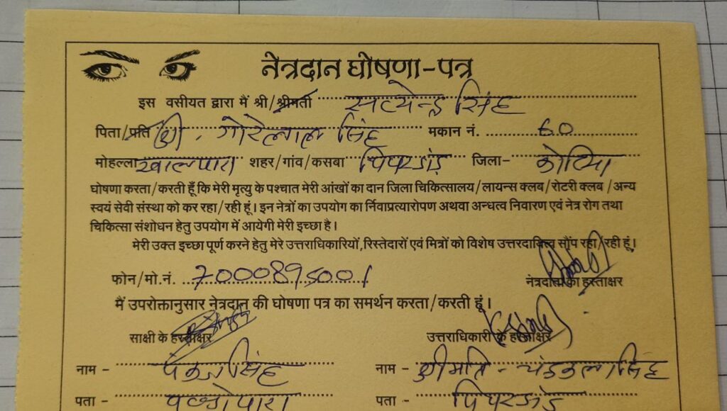 विश्व अंग दान दिवस के अवसर पर छत्तीसगढ़ प्रदेश स्वास्थ्य कर्मचारी संघ के ब्लॉक अध्यक्ष सत्येंद्र सिंह के द्वारा नेत्रदान किया गया।