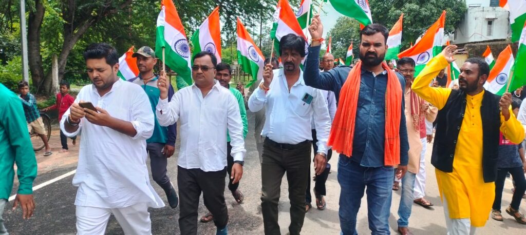 अमृत महोत्सव के उपलक्ष पर चर्चा में विशाल तिरंगा यात्रा का आयोजन भाजपा मंडल के द्वारा किया गया अध्यक्ष शैलेश शिवहरे।
