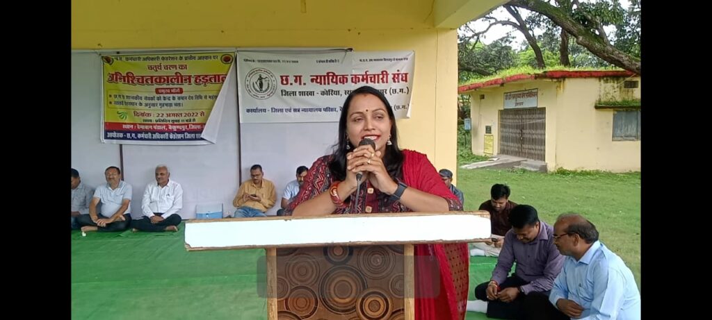 आज के आंदोलन में मंच पर जिला पंचायत अध्यक्ष रेणुका सिंह,जिला पंचायत सदस्य सुनीता देवी कुर्रे,अधिवक्ता संघ के उपाध्यक्ष एल आर रवि धरना स्थल पर पहुंच कर अपना समर्थन दिए और कर्मचारियों और कर्मचारियों का उत्साहवर्धन किए।