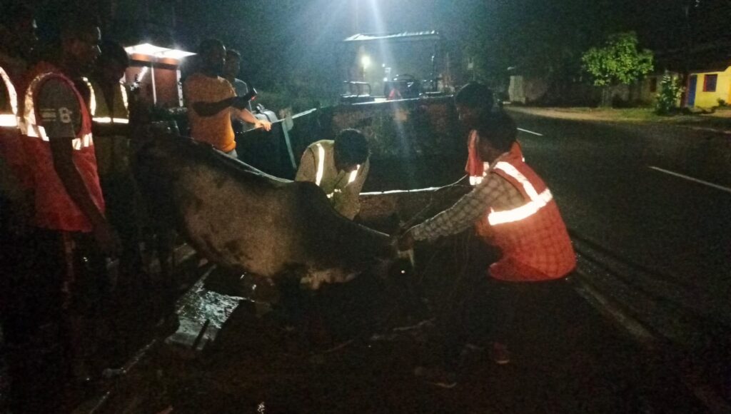 घटना रात 9:00 बजे बैकुंठपुर ओड़गी नाका पेट्रोल पंप के पास कोई अंधे गाड़ी वाले ने एक गौ माता को ठोकर मार दी टक्कर इतनी जबरदस्त थी कि गौ माता का अगला पैर टूट कर चकनाचूर हो गया और गौ माता कई घंटों तक वहां पर घायल अवस्था में लहूलुहान वहीं पर पड़ी थी कई लोगों ने देखा और फोन में जानकारी देकर अपनी फॉर्मेलिटी पूरी कर दी पर किसी ने भी डॉक्टर साहब को बुला करके इस गौ माता के इलाज के लिए अपनी मानवता नहीं दिखाई रात 11:00 बजे बैकुंठपुर रात्रि में सफाई कर रहे सफाई कर्मचारी भाइयों की मदद से घायल गौमाता को अपनी निगरानी में ला करके रखवाया हूं रात में घायल गौ माता की फोटो डॉक्टर साहब को भेजा था तो डॉक्टर साहब ने बोला की हड्डी टूट के अलग हो गई है अगर जुड़ने लाइक होगी तो ठीक नहीं तो गौ माता का पैर काटना पड़ेगा सुबह डॉक्टर साहब को बुला करके घायल गौमाता इलाज कराया गया अनुराग दुबे के द्वारा