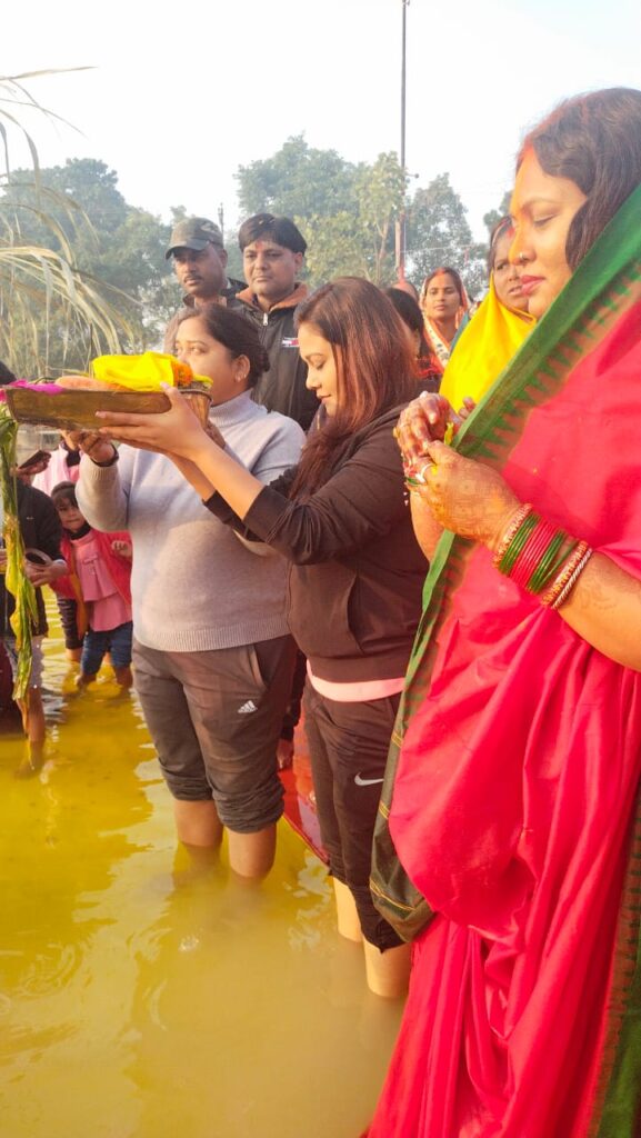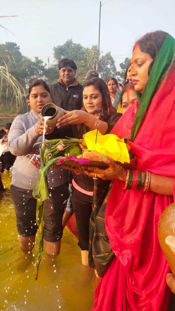 – व्रतियों के द्वारा एवं उनके परिवार के द्वारा छठ मैया की बधाई एवं शुभकामनाएं समस्त क्षेत्रवासियों को दी गई समाप्ति के
