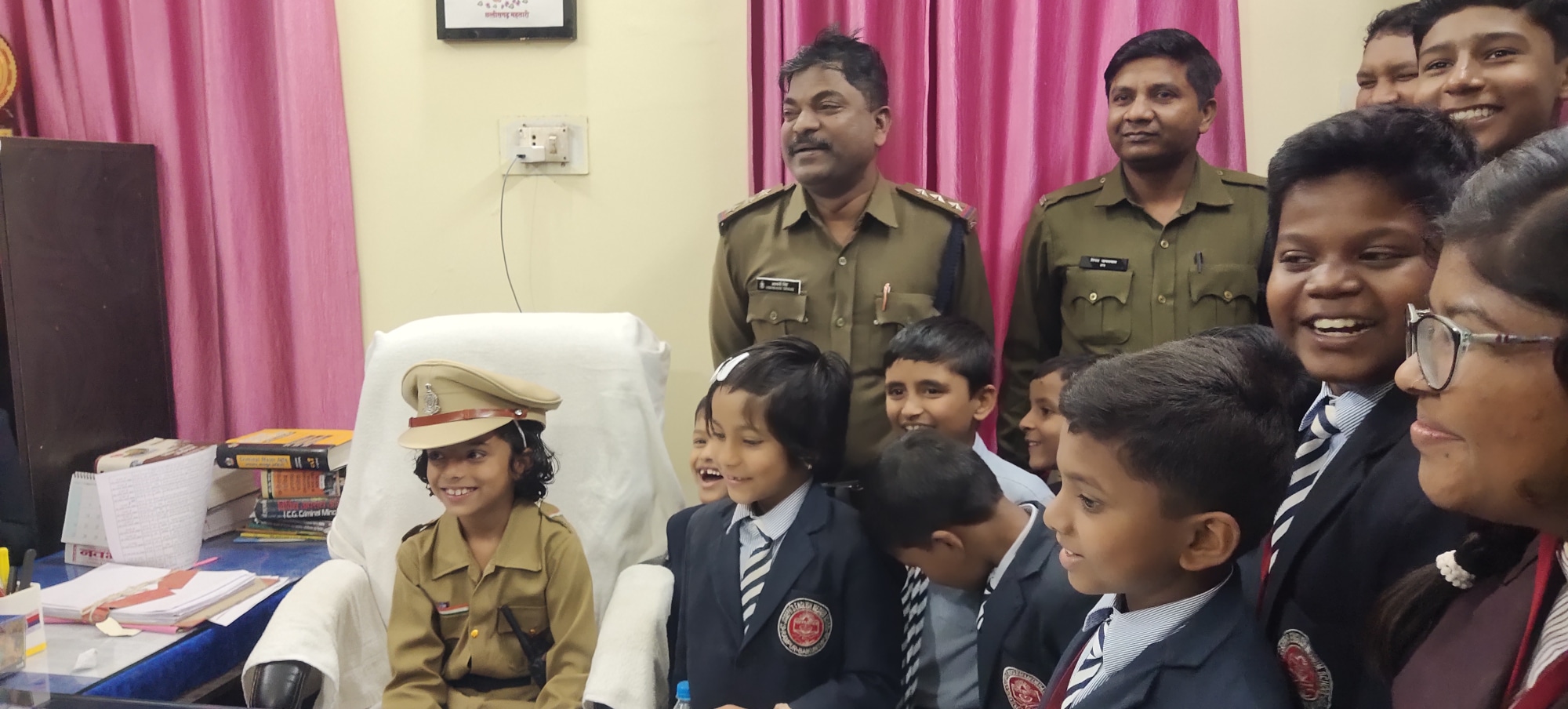पुलिस मुख्यालय रायपुर के आदेशानुसार पुलिस अधीक्षक कोरिया त्रिलोक बंसल के निर्देशन एवं अतिरिक्त पुलिस अधीक्षक रोहित झा व उप पुलिस अधीक्षक श्रीमती कविता ठाकुर के मार्गदर्शन में 14 से 20 नवंबर तक जिले में बाल सुरक्षा सप्ताह का आयोजन किया जा रहा है जिसके तहत गुरुवार को सेंट जोसेफ इंग्लिश मीडियम स्कूल रामपुर बैकुंठपुर के छात्र-छात्राएं थाना भ्रमण के लिए सिटी कोतवाली बैकुंठपुर पहुंचे जहां थाना प्रभारी निरीक्षक अश्विनी सिंह ने बच्चों का स्वागत किया एवं थाने से संबंधित संपूर्ण गतिविधियों की विस्तृत जानकारी प्रदान करते हुए रोजनामचा, सीसीटीएनएस, महिला डेस्क, बंदी गृह, विवेचक कक्ष, दिवस अधिकारी, थाना प्रभारी कक्ष से संबंधित जानकारी प्रदान की साथ ही कक्षा दूसरी की छात्रा निशा मिश्रा को 1 दिन का थाना प्रभारी बनाकर अपनी कुर्सी जैसे ही बैठाया तो बच्ची के खुशी का ठिकाना नहीं रहा और थाने का काम संभालने के बाद उपस्थित स्टाफ ने पूछा कि बताइए हमारे लिए क्या आदेश है तो 1 दिन के थाना प्रभारी ने कहा कि जाइए सब चोर को पकड़कर मेरे सामने लाइए और दोबारा कहीं भी चोरी नहीं होनी चाहिए इस बात को सुनकर उपस्थित सभी लोग हतप्रभ रह गए इसके बाद थाना प्रभारी ने पूरे थाने का भ्रमण किया।