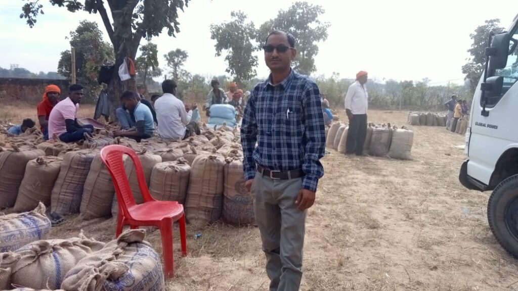 धान खरीदी केंद्र पटना में बेहतरीन तरीके से की जा रही धान खरीदी किसानों भाई बहनों की बारदाने की कमी नहीं भरपूर बारदाना उपलब्ध समिति प्रबंधक अनूप कुशवाहा।