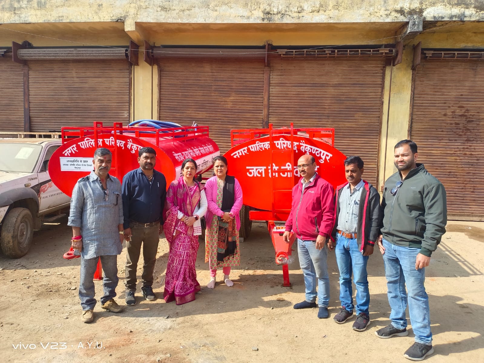 नपा अध्यक्ष नविता शैलेश शिवहरे के अध्यक्ष_निधि द्वारा 2 नग पानी टैंकर (5 हजार) लीटर जिसमे 1 नग टैंकर मे मोटर फ़िटिंग नपा परिषद को दिया व पूजा कर प्रारंभ किया अध्यक्ष नविता शिवहरcmo मुक्ता सिंह चौहान समस्त पार्षद