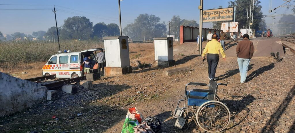 आज सुबह बैकुंठपुर रेलवे स्टेशन में एक घटना घटी जिसमें विनय कुमार राजवाडे के परिजन विनय कुमार राजवाडे का उपचार करा कर रायपुर से लौट रहे थे
