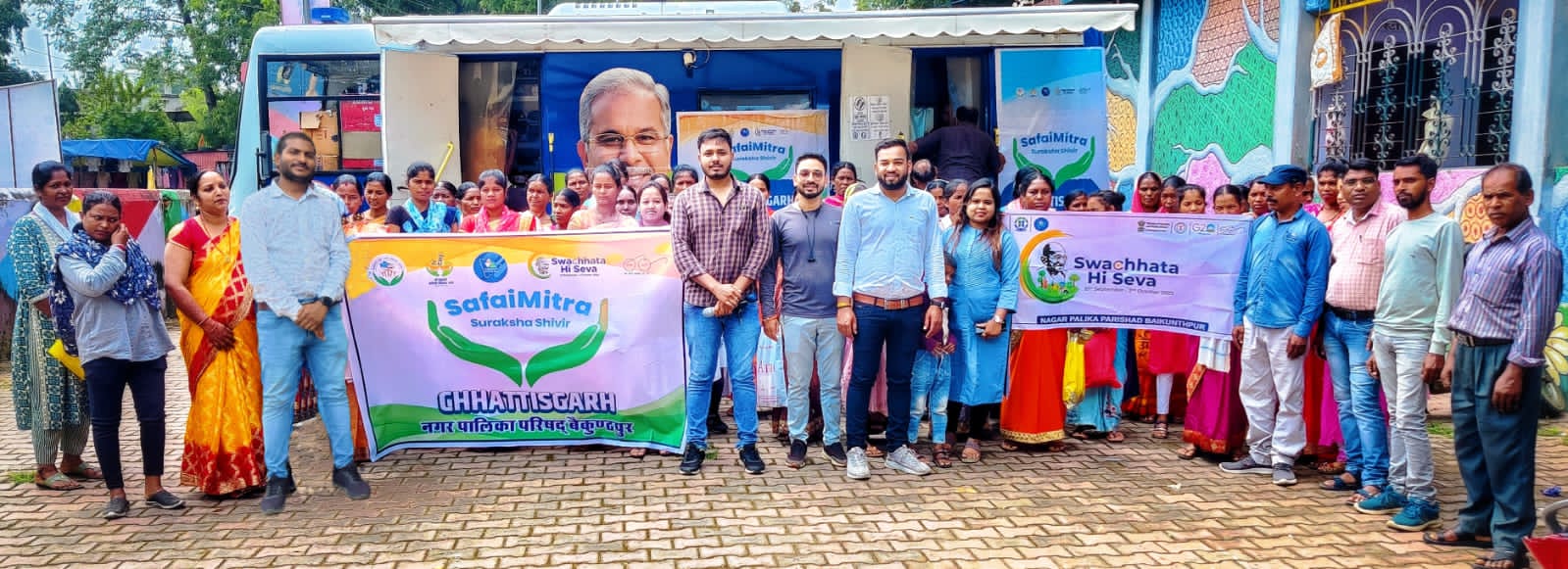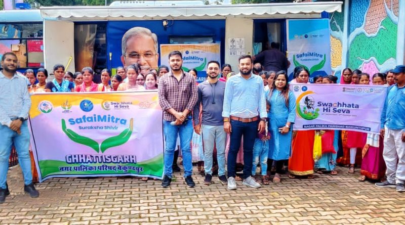 जिला कोरिया बैकुंठपुर नगर पालिका परिषद बैकुंठपुर में स्वच्छ भारत मिशन अंतर्गत शासन के निर्देशानुसार 15 सितंबर 2023 से 2 अक्टूबर 2023 तक स्वच्छता पखवाड़ा एवं इंडियन स्वच्छता लीग 2.0 के तहत स्वच्छता संबंधी विभिन्न प्रकार के कार्यक्रमों का आयोजन किया जा रहा है। इसी कड़ी में दिनांक 21 सितंबर 2023 को मानस भवन बैकुंठपुर में सभी स्वच्छता दीदियों एवं सफाई कर्मचारियों व उनके परिवारों का स्वास्थ्य परीक्षण शिविर का आयोजन किया गया जिसमें मुख्यमंत्री शहरी स्लम स्वास्थ्य योजना अंतर्गत संचालित होने वाले मोबाइल मेडिकल यूनिट के टीम द्वारा स्वच्छता दीदियों एवं सफाई कर्मचारियों का स्वास्थ्य परीक्षण किया गया