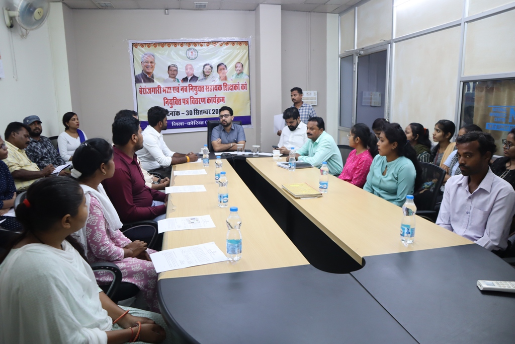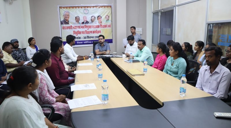 कोरिया 30 सितम्बर 2023/ प्रदेश के मुख्यमंत्री श्री भूपेश बघेल ने मुख्यमंत्री निवास कार्यालय, रायपुर से वीडियो कॉन्फेंरेसिंग के माध्यम से प्रदेश के विभिन्न जिलों के नव नियुक्त सहायक शिक्षकों, व्याख्याताओं को नियुक्ति पत्र प्रदान किए साथ ही पंजीकृत बेरोजगार युवाओं को बेरोजगारी भत्ता की राशि उनके खाते में अंतरण किए।