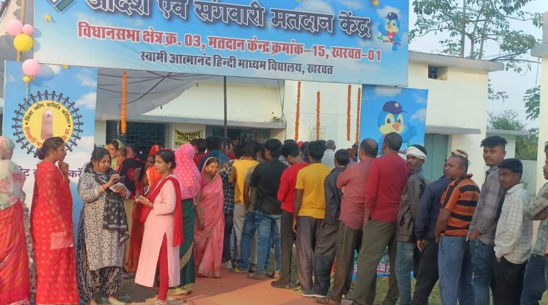 बैकुंठपुर विधानसभा के खरवत मतदान केंद्र में लगी है लंबी कतार