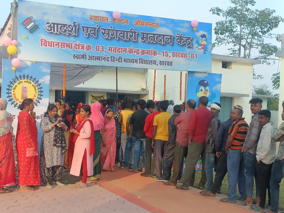 बैकुंठपुर विधानसभा के खरवत मतदान केंद्र में लगी है लंबी कतार 3 बजे के बाद बड़ी संख्या में पहुंचे मतदाता