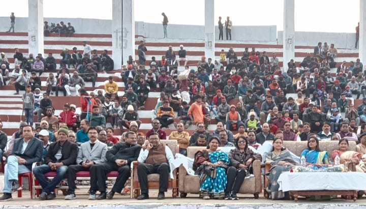 चर्चा कालरी………. महाजन स्टेडियम के विशाल प्रांगण में चल रहे छत्तीसगढ़ प्रदेश का सबसे लंबे समय से आयोजित किया जाने वाला फुटबॉल प्रतियोगिता 48 वां अखिल भारतीय सेशन स्मृति स्वर्ण कप फुटबॉल प्रतियोगिता के 11 वे दिन लगभग 20 000 खेल प्रेमी दर्शकों की जबरदस्त उपस्थिति में प्रतियोगिता का दूसरा सेमीफाइनल मैच दिल्ली फुटबॉल क्लब दिल्ली और पठानकोट की टीम के मध्य बेहद रोमांचक शानदार मैच खेल प्रेमी दर्शकों को देखने को मिला पूर्व परंपरा की भांति राष्ट्रगान के पश्चात मुख्य अतिथि श्रीमती पूनम झा अध्यक्ष सौम्या महिला मंडल बैकुंठपुर क्षेत्र ,श्रीमती वसुंधरा कुमार सचिव महिला मंडल ,श्रीमती मनीषा गुप्ता ,श्रीमती उर्मिला मांडवी ,श्रीमती संध्या रामावत श्रीमती रेनू गुप्ता, श्रीमती बीना सिंह ,श्रीमती शंभू लाल, श्रीमती मनीषा मंजरी के द्वारा खिलाड़ियों से परिचय प्राप्त कर प्रतियोगिता का पहले सेमी फाइनल मैच की शुरुआत की गई मैच प्रारंभ होते ही दोनों ही टीमों ने आक्रामक खेल का प्रदर्शन किया पहले हाफ के खेल के दौरान दिल्ली की टीम ने काफी अच्छा प्रयास किया किंतु उनके प्रयास का जवाब देते हुए पठानकोट की टीम भी आक्रामक खेल में लग गई किंतु दिल्ली के टीम के गोलकीपर ने पठानकोट के सभी प्रयासों को विफल कर दिया मध्यांतर के बाद के खेल में भी दोनों टीम बहुत ही बेहतरीन खेल का प्रदर्शन करती रही इसके बावजूद निर्धारित समय तक कोई गोल नहीं हो सका इसके पश्चात रेफरी के द्वारा 5-5 पेनल्टी शूटआउट करवाइए किंतु इसमें भी बात बराबरी की रही इसके पश्चात छठवें पेनल्टी में भी निर्णय नहीं हो सका और अंत में 7 वे पेनल्टी शूटआउट में पठानकोट की टीम एक गोल से जीत गई