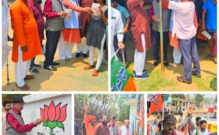 कोरिया बैकुंठपुर – भारतीय जनता पार्टी लोकसभा चुनाव के मद्देनजर एक बार पुनः जोर सोर से अपने विजय अभियान पर जुट गई है।जिसके मंशानुरूप एक एक बूथ पर मजबूती के लिए बूथ से बूथ विजय संकल्प महाअभियान की शुरुआत आज 30 दिसंबर से की गई। भाजपा प्रदेश नेतृत्व के आह्वान पर बैकुंठपुर विधायक भईया लाल राजवाड़े व कोरिया भाजपा जिला अध्यक्ष कृष्ण बिहारी जायसवाल के नेतृत्व और भाजपा के पूर्व संगठन महामंत्री व औषधि बोर्ड के अध्यक्ष राम प्रताप सिंह के मार्गदर्शन में बैकुंठपुर कोरिया के बूथ क्र 118 चेर बूथ क्र 141 सुरमी,बूथ क्र 101 सरडी,बूथ क्र 186 – 187 बंजारीडांड से विधायक भईया लाल राजवाड़े व अभियान में पधारे अतिथि राम प्रताप सिंह सहित जिला अध्यक्ष कृष्ण बिहारी द्वारा दीवार लेखन सहित झंडा लगाकर बूथ विजय संकल्प महाअभियान का आगाज किया गया।जिसके तहत भाजपा कार्यकर्ता और पदाधिकारियों द्वारा उक्त सभी बूथ अंतर्गत मतदाताओं और लाभार्थियों से जनसंपर्क कर उनके घरों में भाजपा का झंडा लगाने मतदाताओं को प्रेरित किया गया साथ ही “एक बार फिर से मोदी सरकार” “अबकी बार 400 पार” सहित “हम हैं मोदी परिवार” के नारों के साथ बूथ क्षेत्र के मतदाताओं और ग्रामीण जनों संग मिलकर कोरबा लोकसभा प्रत्याशी सरोज पांडेय के लिए वोट देने की अपील किए । बूथ विजय संकल्प महाअभियान की जोरदार शुरुआत की कड़ी में भाजपा जिला अध्यक्ष कृष्ण बिहारी जायसवाल ने बताया की चुनाव में विजय का मार्ग बूथ को जीत कर ही निकलता है, इस मूल वाक्य को मूर्त रुप देने भाजपा अपने समस्त कार्यकर्ताओं को उनके बूथों में सक्रियता से कार्य कराने की रणनीति पर काम कर रही है। भाजपा के कार्यकर्ता आज 30 मार्च से अपने अपने बूथों में सक्रिय हो चुके हैं,बूथ समिति की बैठकें करके सभी सदस्यों को लोकसभा चुनाव के प्रचार प्रसार की गति बढा़ने की ओर तत्परता से कार्य किए जायेंगे । बूथ वार सौ – सौ झण्डा लगाने का कार्य भाजपा कार्यकर्ता अपने बूथों में शुरू करेंगे। साथ ही सघन जनसंपर्क करते हुये बूथ में निवासरत लाभार्थियों से संपर्क करते हुए भाजपा के बूथ विजय संकल्प अभियान को सफल बनाएंगे। बूथ अंतर्गत मतदाताओं को भाजपा के लिए मतदान करने प्रेरित करते हुये प्रत्येक बूथ में 370 वोट के लक्ष्य पर फोकस करेंगे । जिला अध्यक्ष ने कहा कि आज 30 मार्च को भाजपा प्रदेश स्तर पर बूथ विजय संकल्प अभियान की शुरुआत कर चुकी है । लोकसभा चुनाव के तैयारियों के मद्देनजर कोरिया जिले मे प्रत्येक मंडलो व बूथ, केंद्रो मे प्रचार सामग्री पहुंच गई है और जिले के सभी बूथों में बूथ विजय संकल्प अभियान एक साथ आरंभ हो चुका है । साथ ही कोरबा लोकसभा चुनाव में भाजपा की विजय सुनिश्चित करने संगठन का एक एक कार्यकर्ता संकल्पित हो कार्य कर रहा
