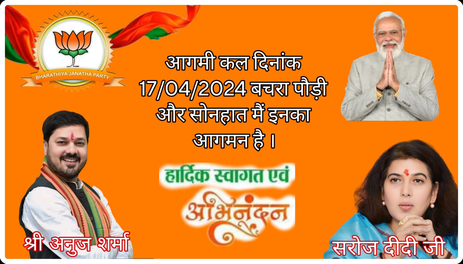 कोरिया बैकुंठपुर – कोरबा लोकसभा प्रत्याशी सुश्री सरोज पांडेय कल दिनांक 17 अप्रैल को दोपहर 12 बजे कोरिया जिले के सोनहत विकासखंड मुख्यालय स्थित सलगंवा कला स्कूल ग्राउंड में चुनावी सभा में शामिल होकर सभा को करेंगी संबोधित तत्पश्चात हेलीकॉप्टर के माध्यम से सरोज पांडेय ग्राम बचरापोड़ी पहुंचकर घुटरीदाई धाम में माता जी की पूजा अर्चना करेंगी । लोकसभा प्रत्याशी सरोज पांडेय की इस आमसभा और देवी दर्शन में भाजपा कार्यकर्ता और जिले वासियों से शामिल होने के लिए जिला अध्यक्ष कृष्ण बिहारी जायसवाल ने अपील की है ।