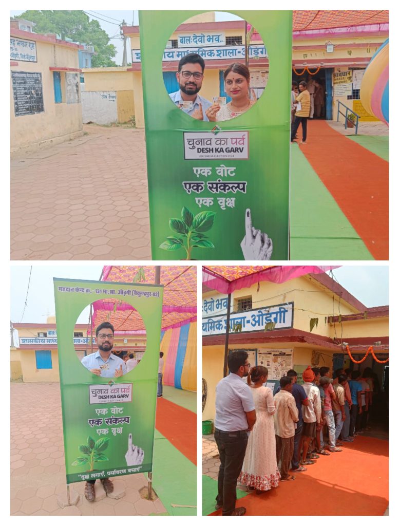 कोरिया । कोरिया कलेक्टर व जिला निर्वाचन अधिकारी श्री विनय कुमार लंगेह, उनकी पत्नी श्रीमती डॉ. एकता लंगेह बैकुंठपुर के ओड़गी मतदान केंद्र 131 में पहुंचे और कतार में लगकर मतदान किए।