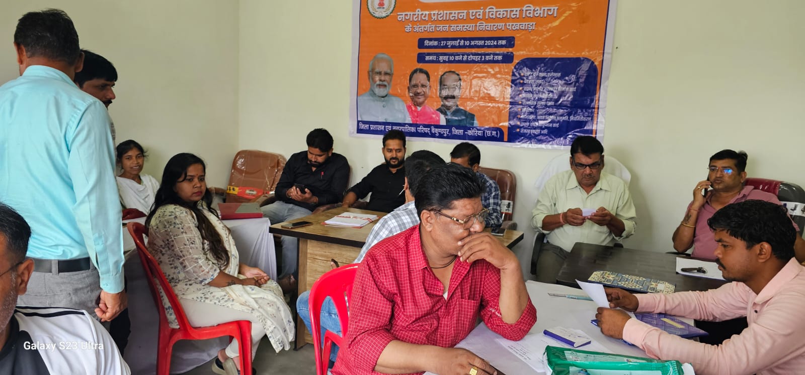 जिला कोरिया बैकुंठपुर ,, नगर पालिका बैकुंठपुर के अंतर्गत जन समस्या शिविर का आयोजन आज दिनांक 2/8/2024 क़ो शासन की निर्देशानुसार जन समस्या पखवाड़ा 2024 का आयोजन वार्ड क्रमांक 6 एवं 7,1.2.4.15. मे किया गया जिसमे 24 आवेदन प्राप्त हुवे l कुल आवेदन 122 प्राप्त हुए शिविर का औचक निरिक्षण सयुक्त संचालक क्षेत्रिय कार्यालय सरगुजा संभाग ज़िला सरगुजा के सहायक अभियंता विवेक गुप्ता एवं उप अभियंता विनीत जायसवाल के द्वारा किया गया निरीक्षण.उनके द्वारा शिविर मे आये हितग्राहियो के समस्या एवं मांग से अवगत हुए उक्त शिविर मे शिविर के नोडल अधिकारी मनोज कुमार पटेल सहायक अभियंता न. पा. बैकुंठपुर दल नोडल अधिकारी नरेश कुमार कुशवाहा सूश्री अनामिका एक्का उप अभियंता कौशल यादव सिकंदर सिद्धार्थ विश्वनाथ कुजूर मनोज साहू मनोज भगत आश्रिता तिर्की बलराम राकेश सिंह पटवारी कन्हैया गोयल एवं नगर पालिका बैकुंठपुर के उपाध्यक्ष आशीष यादव ने वार्ड वासियों को जन समस्या शिविर के बारे में बताया और स्वयं रहे उपस्थित शिविर मे निकाय के व अन्य विभाग के कर्मचारी उपस्थित होकर आयोजन काे सफल किया गया.।