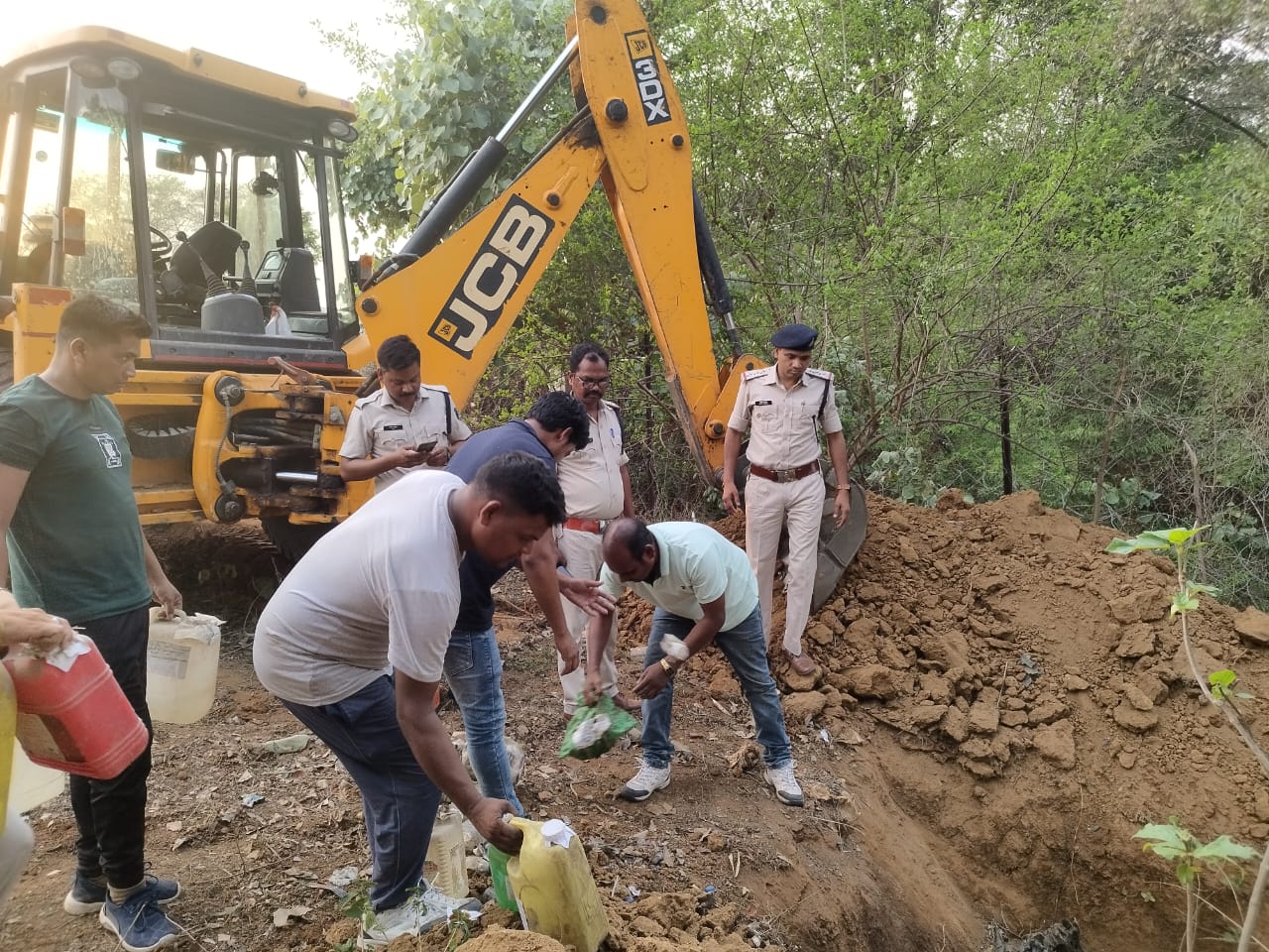 अपराधो में जप्त शराब का विधिपूर्वक किया गया निराकर कुल 119 मामलो के 454.58 लीटर शराब का कोरिया पुलिस द्वारा किया गया नष्टिकरण