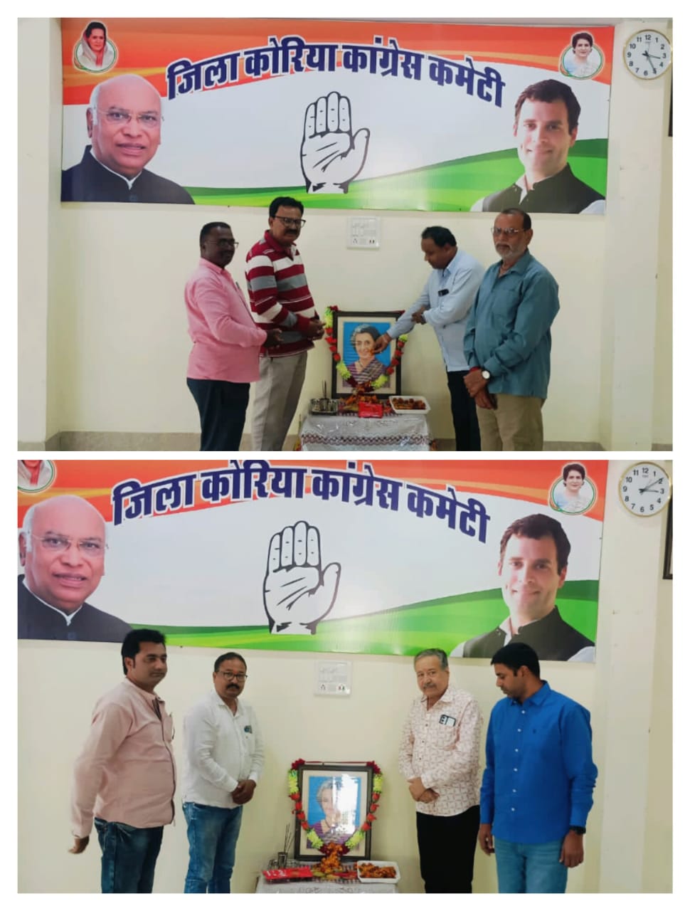 बैकुंठपुर: कांग्रेस कार्यालय राजीव भवन में आज भारत की प्रथम महिला प्रधानमंत्री और आयरन लेडी के रूप में प्रसिद्ध इंदिरा गांधी जी की पुण्यतिथि पर कांग्रेसियों ने भावपूर्ण श्रद्धांजलि अर्पित की। इस अवसर पर कांग्रेस के वरिष्ठ पदाधिकारियों, कार्यकर्ताओं उनके छायाचित्र पर पुष्पांजलि अर्पित की और उनके द्वारा देश के प्रति किए गए योगदान को याद किया।