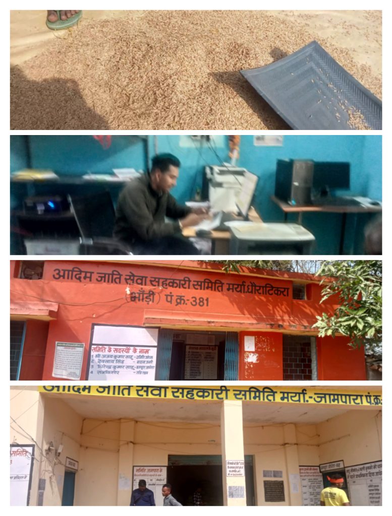 आदिम जाति सेवा सहकारी समिति मर्यादित धौराटिकुरा भांडी जामपारा में धान खरीदी प्रभारी उपस्थित ही नहीं है धौराटिकुरा भांडी में खाखरा धान खरीदी जामपारा नमीं धान खरीदी