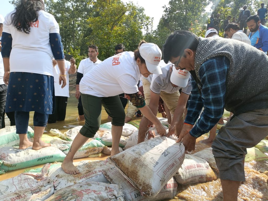 सुबह 10 बजे शुरू हुआ यह अभियान “साथी हाथ बढ़ाना” और “पानी जिंदगानी है” जैसे प्रेरक ध्येय वाक्यों के साथ पूरे उत्साह से संपन्न हुआ। बोरी बंधान कार्य से न केवल बहते पानी को रोका गया, बल्कि जल संरक्षण के प्रति जागरूकता का एक आदर्श उदाहरण प्रस्तुत किया गया।