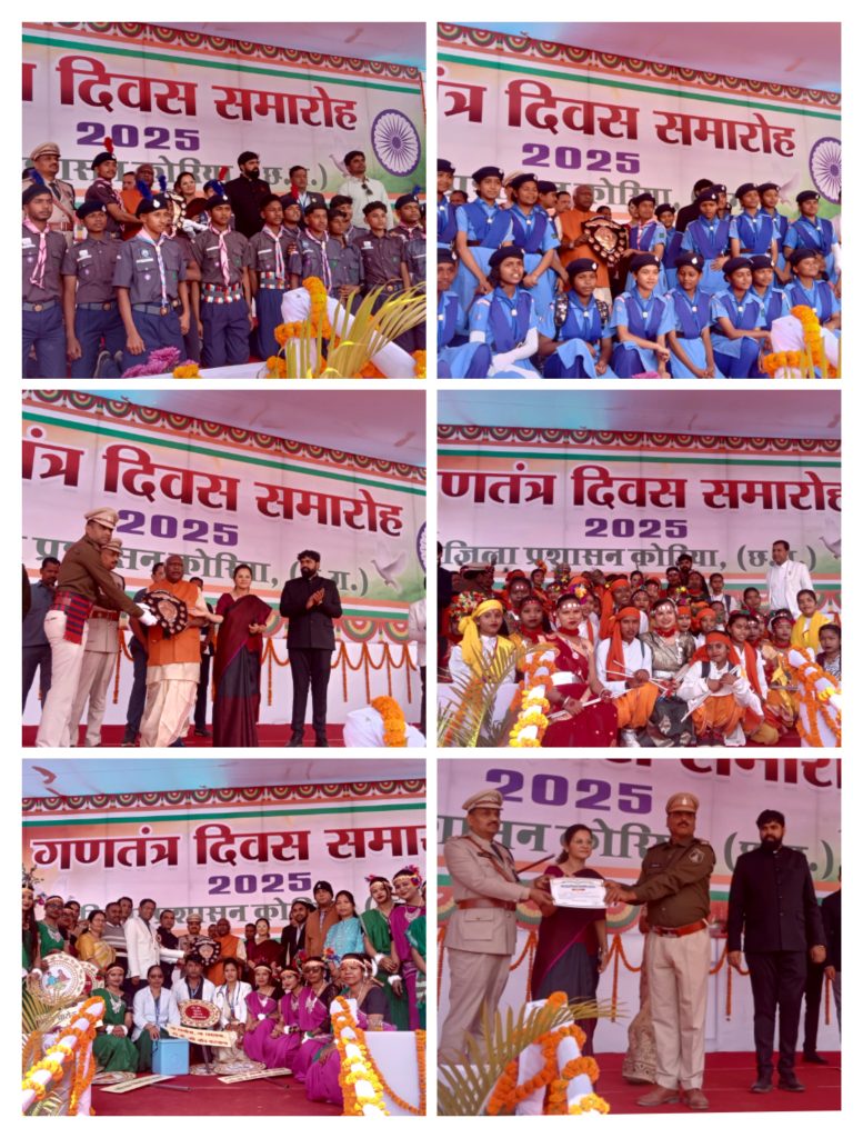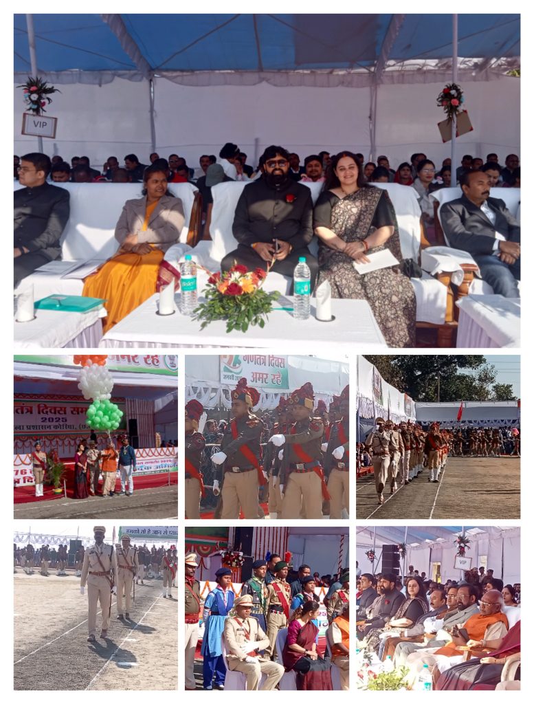 कोरिया 26 जनवरी 2025/ 76वें गणतंत्र दिवस के अवसर पर आयोजित जिलास्तरीय कार्यक्रम में आज रामानुज हायर सेकेंडरी स्कूल के मिनी स्टेडियम में मुख्य अतिथि व सरगुजा सांसद श्री चिंतामणि महराज की उपस्थिति में विभागीय