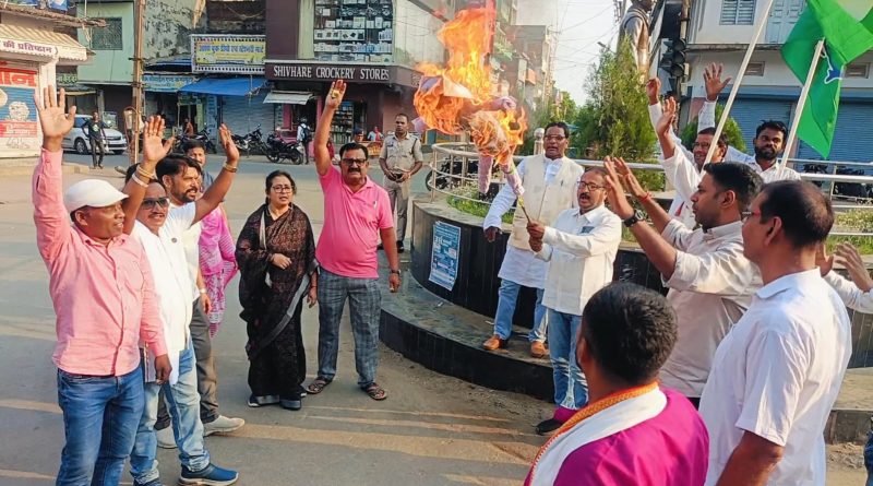 भाजपा सरकार ने ED को बनाया राजनीतिक हथियार:: जिला मुख्यालय बैकुंठपुर में भाजपा सरकार एवं प्रवर्तन निदेशालय ED का पुतला दहन किया