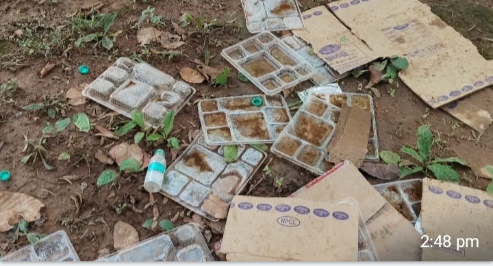अधिकारी औऱ सिपाहियों के लिए भोजन की व्यवस्था वीआईपी खाना कहकर की गई, जिसे प्लास्टिक की थालियों और बोतलों में पानी पैक जंगल में ही वितरित किया गया। भोजन उपरांत ये सभी प्लास्टिक सामग्री जंगल में ही फेंक दी गई जो अब लगभग सौ मीटर के दायरे में फैल चुकी है।