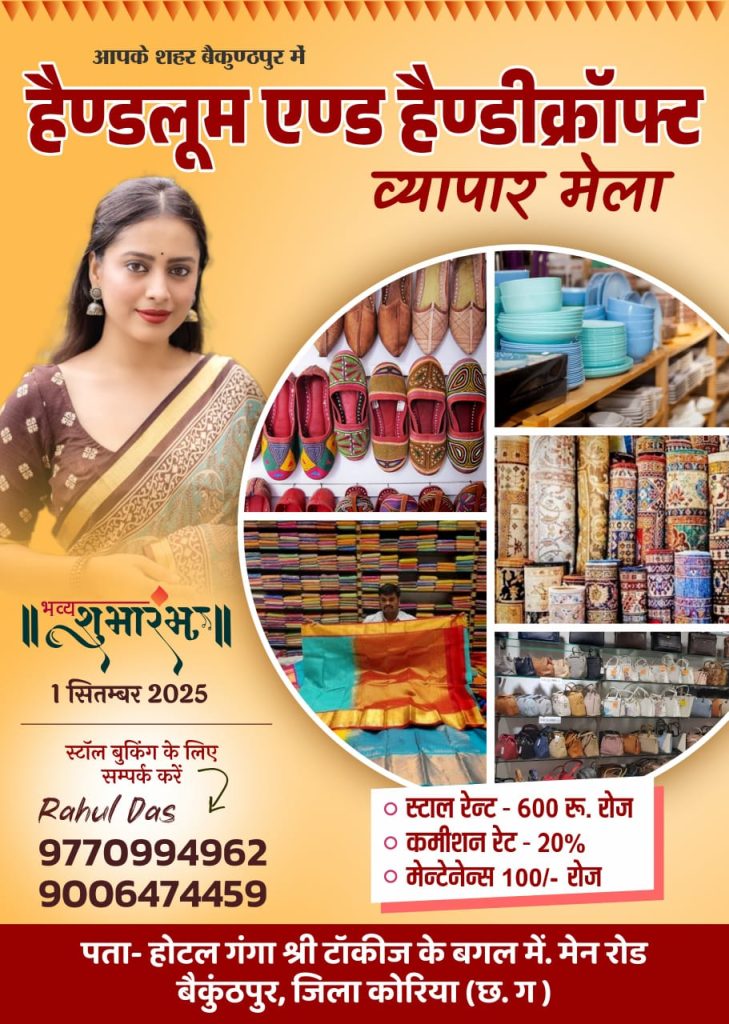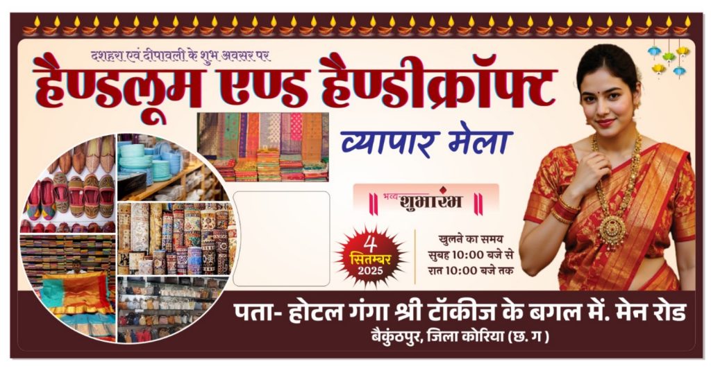 जिला कोरिया बैकुंठपुर मुख्यालय के अंतर्गत आयोजन हैडलूम और हैंडिक्राफ्ट व्यापार मेला का शुभारंभ किया गया