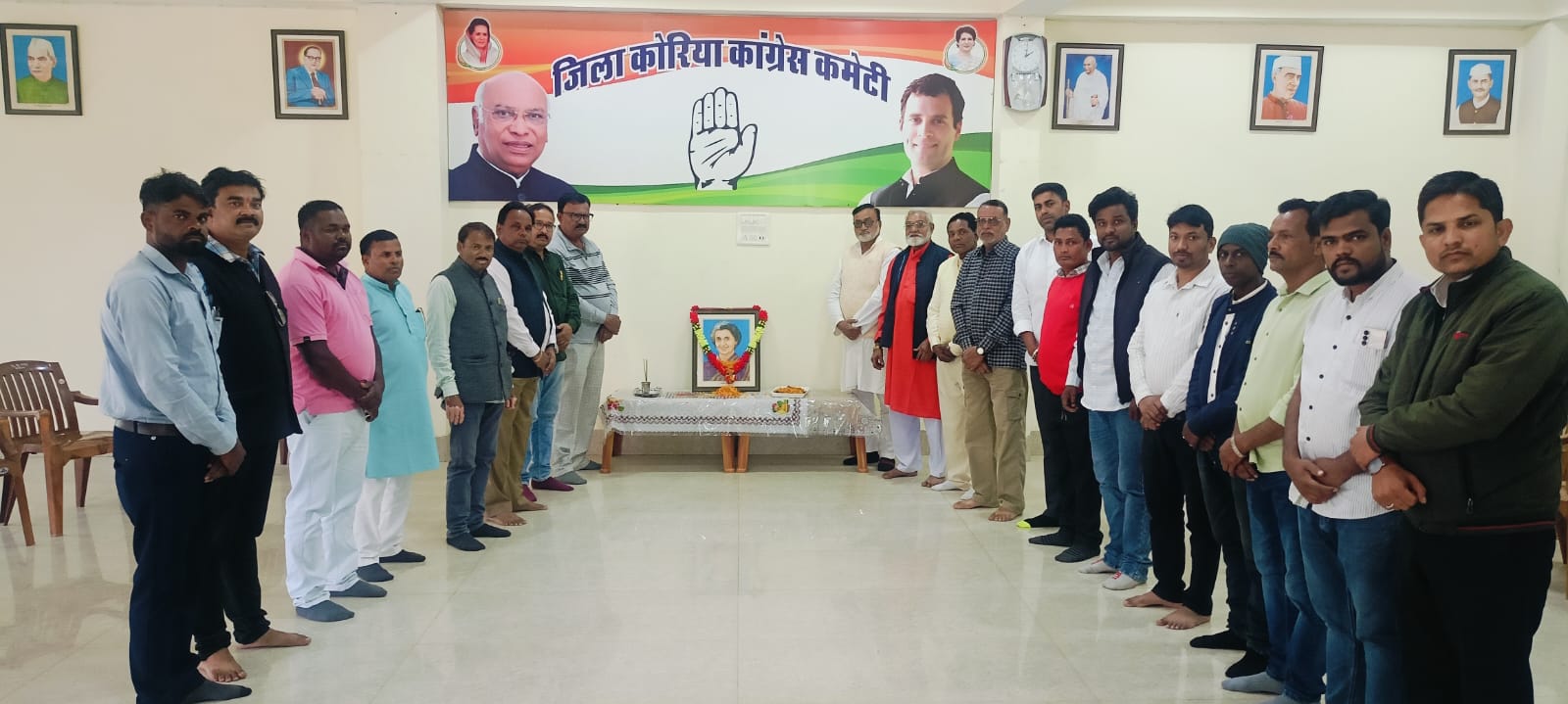 बैकुंठपुर। 19/11/2025 पूर्व प्रधानमंत्री प्रियदर्शिनी श्रीमती इंदिरा गांधी जी की जयंती के अवसर पर आज राजीव भवन, कांग्रेस कार्यालय बैकुंठपुर में श्रद्धांजलि सभा आयोजित की गई। कार्यक्रम की शुरुआत उनके चित्र पर पुष्पांजलि अर्पित कर की गई, जिसके पश्चात उपस्थित कांग्रेसजनों ने दो मिनट का मौन रखकर उन्हें नमन किया।