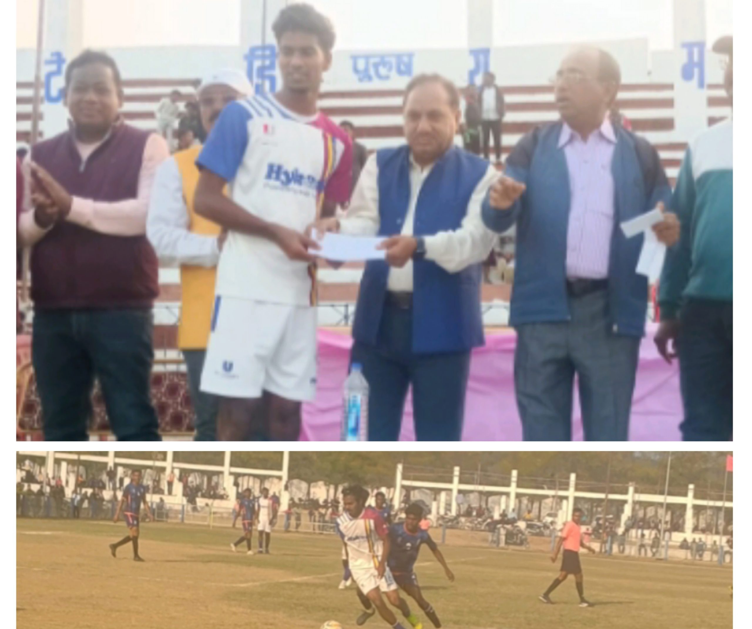 मंच संचालन व अतिथियों की देखरेख मो. रेयाज द्वारा गोल्ड कप फुटबॉल: जॉय यूनिवर्सिटी चेन्नई ने दुर्गापुर को 2-0 से हराकर सेमीफाइनल में बनाई शानदार जगह योजन समिति में अध्यक्ष सह क्षेत्र प्रबंधक संजय कुमार