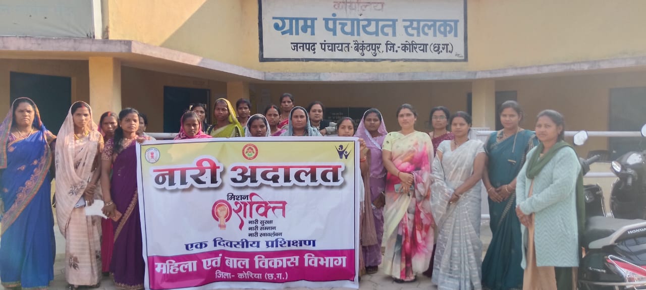 कोरिया, फरवरी 2026/ कलेक्टर चंदन त्रिपाठी के निर्देशानुसार एवं जिला कार्यक्रम अधिकारी एन.एस. रावटे के मार्गदर्शन में ग्राम पंचायत सलका में ‘नारी अदालत’ का एक दिवसीय प्रशिक्षण कार्यक्रम आयोजित किया गया। यह प्रशिक्षण ग्राम पंचायत मनसुख एवं ग्राम पंचायत सलका में गठित नारी अदालत के सदस्यों के लिए आयोजित किया गया।