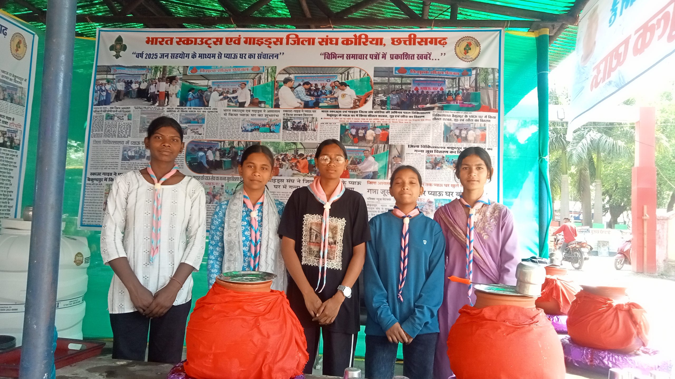 जिला कोरिया बैकुंठपुर भारत स्काउट्स एवं गाइड्स जिला संघ कोरिया के बेटी इन दोनों भीषण गर्मी और राहगीरों को देखते हुए प्रयासों को प्याऊ जल के माध्यम से पानी पिला रहे हैं जिला अस्पताल प्रांगण में