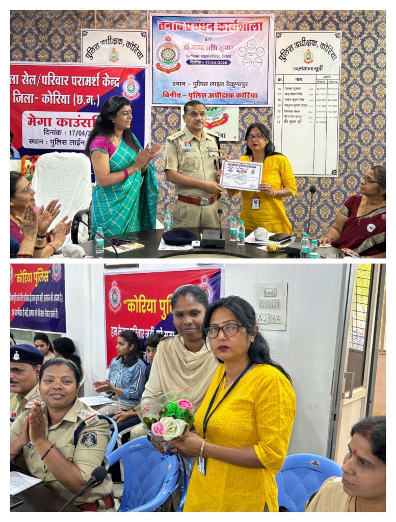 आज दिनांक 17-04-2026 को पुलिस लाइन, बैकुंठपुर में पुलिस के अधिकारियों एवं कर्मचारियों के लिए तनाव प्रबंधन कार्यशाला का आयोजन किया गया।