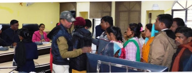जनचैपाल में जिले के सभी विकासखंड के विभिन्न जगहों से आये लोगों ने अपनी षिकायतों एवं समस्याओं के संबंध में चर्चा करते हुए अनेक आवेदन पत्र कलेक्टर को दिये। जिसमें अखराडांड के मनिलाल पनिका ने मानदेय भुगतान, लाखनटोला के जगदीष प्रताप सिंह ने अवैध पट्टा निरस्तीकरण, रीनू खैरवार, ष्यामा, जानकी राजवाडे एवं अन्य ने षिवपुर के कठौतियापारा को ग्राम पंचायत का दर्जा दिलाने एवं कदमबहरा के आलमसाय ने भूमि का कब्जानाम दिलाने सहित अन्य आवेदकों ने मजदूरी भुगतान, आवास आबंटन, हैण्डपंप खनन एवं आर्थिक सहयोग आदि से संबंधित आवेदन पत्र प्रस्तुत किये गये।