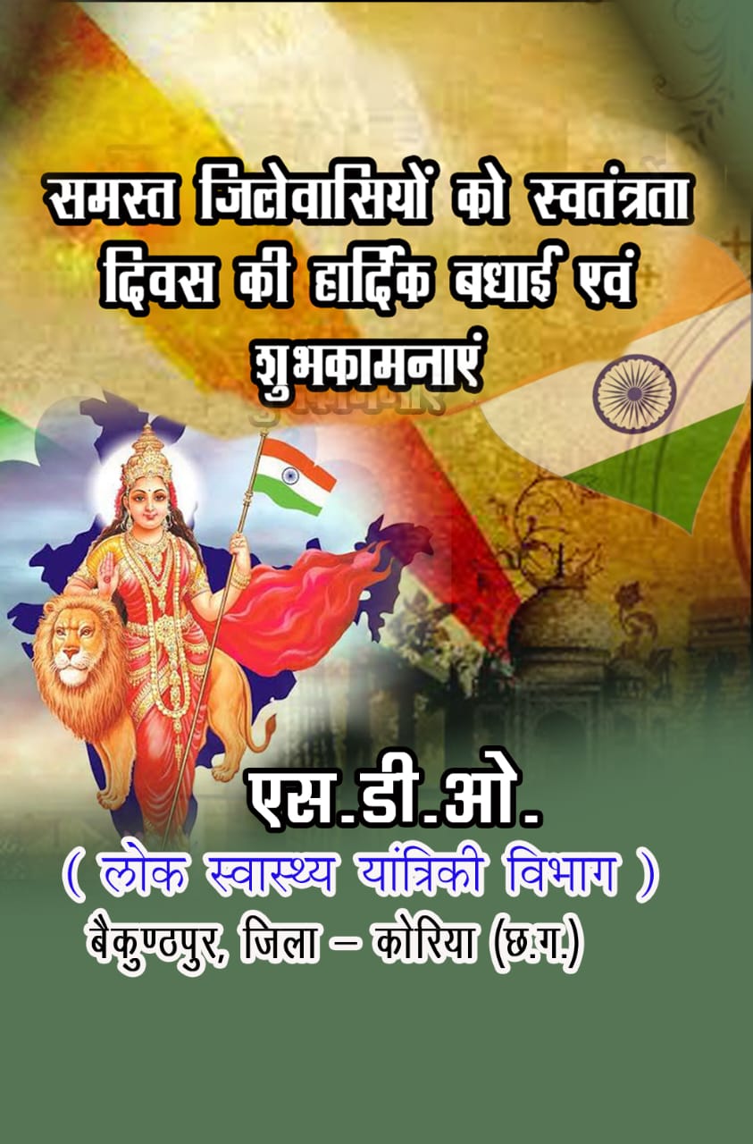 कोरिया छत्तीसगढ़ स्वतंत्रता दिवस की हार्दिक बधाई हो August 14, 2020August 14, 2020 Kamrun Nisha 0 Comments स्वतंत्रता दिवस की हार्दिक बधाई WhatsApp Facebook Twitter LinkedIn