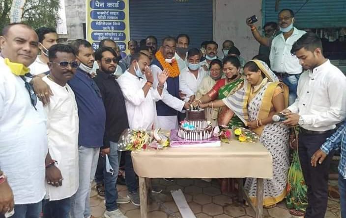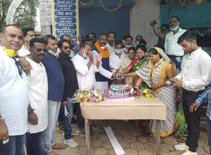 कोरिया जिला मुख्यालय बैकुंठपुर घड़ी चौक मैं भारतीय जनता पार्टी के पदाधिकारी एवं कार्यकर्ताओं द्वारा नगरपालिका बैकुंठपुर के पूर्व अध्यक्ष शैलेश शिवहरे जी का जन्मदिन मनाते हुए