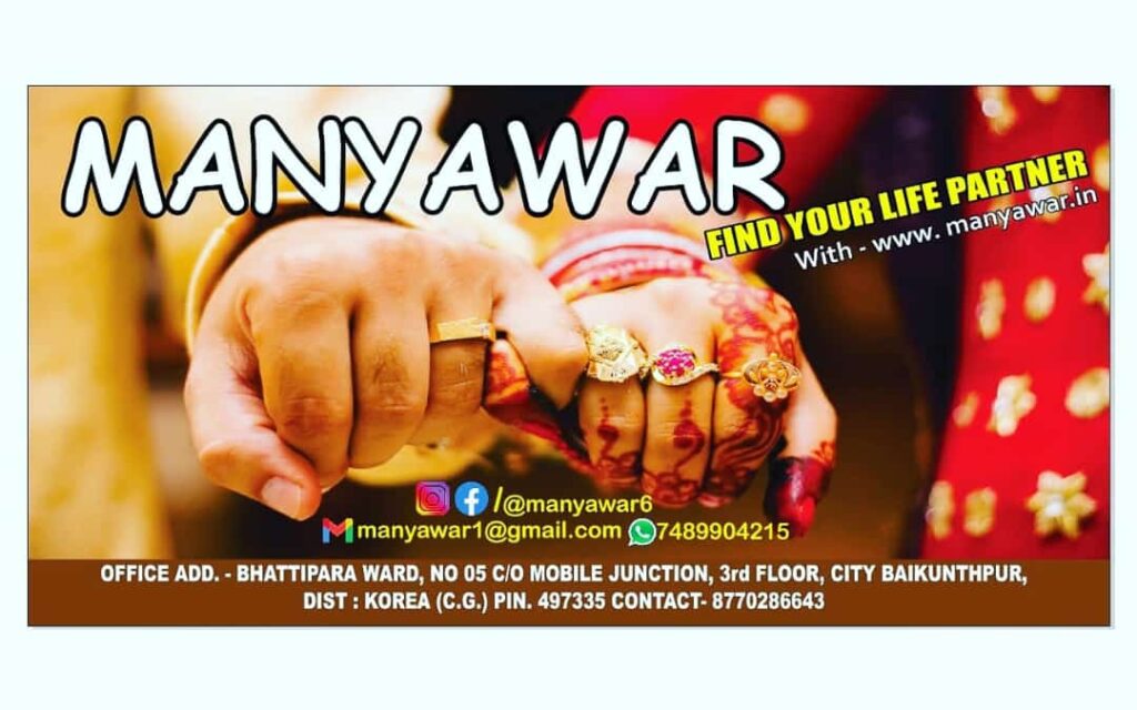 अब ढूंढें अपना जीवन साथी कहीं भी कभी भी घर बैठे www.Manyawar.in के माध्यम से , मान्यवर देता है आपको जीवन साथी ढूंढने के साथ और भी 11 सेवाएं :