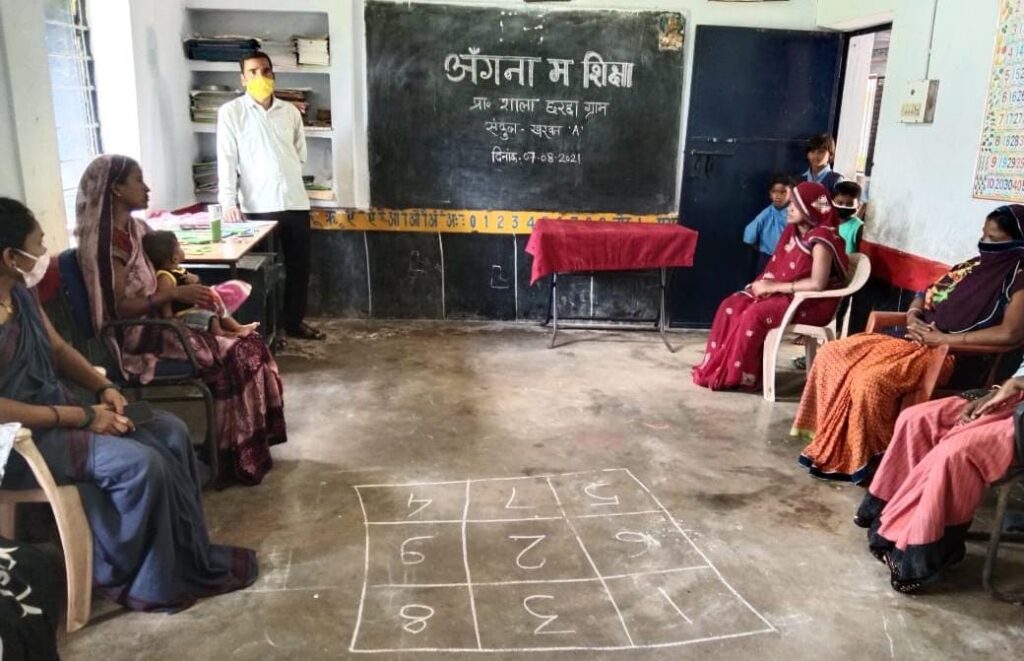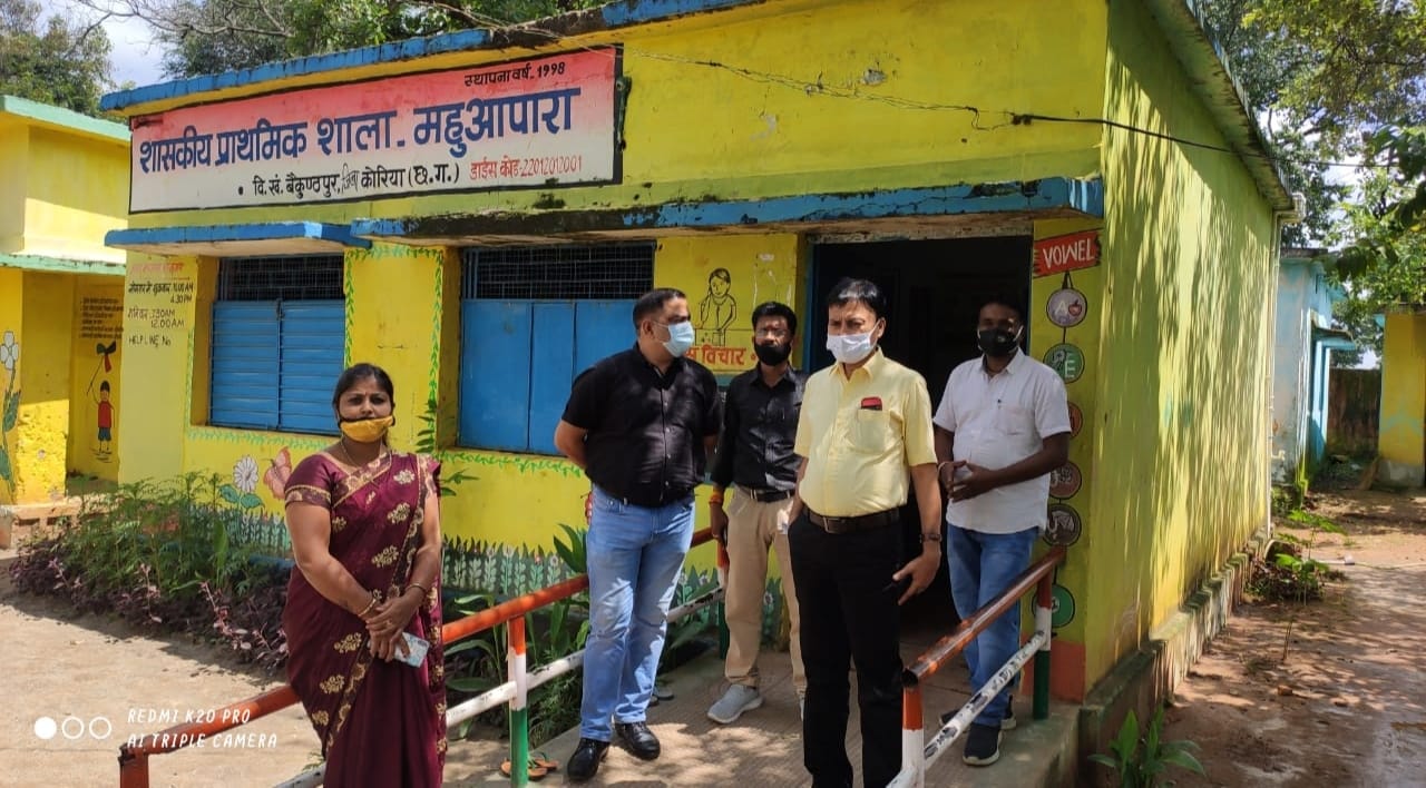 इसी क्रम मे शनिवार को शासकीय प्राथमिक शाला महुआ पारा (खाड़ा) संकुल जनगहना, विकासखंड बैकुंठपुर, जिला कोरिया के डी.एम.सी अजय मिश्रा एवं ए.पी.सी राजकुमार, लेखापाल विजय कुमार सिंह, संकुल समन्वयक सत्य प्रकाश सिंह द्वारा विद्यालय का अवलोकन किया गया, जिसमें बच्चे गतिविधि आधारित कविता पढ़ते हुए शिक्षिका श्वेता सोनी एवं प्रधान पाठक जे.पी. साहू के द्वारा बच्चों को सोशल डिस्टेंसिंग से कतार में खड़े करके अधिकारियों के द्वारा बच्चों से विषय आधारित बातचीत किया गया। शाला का रखरखाव सुसज्जित, पेयजल की व्यवस्था, मध्यान भोजन, प्रिंट रिच वातावरण, टी.एल.एम. देखकर काफी उत्साहित हुए। कोविड-19 के नियमों का पालन करते देख अधिकारी काफी खुश हुए।रसोईया से बातचीत कर कोविड-19 के तहत उन्होंने भी नियमों का पालन करते हुए बच्चों को मध्यान्ह भोजन परोस कर बच्चों को 2 गज की दूरी में बैठाकर खिलाया गया। शनिवार को ही अंगना म शिक्षा कार्यक्रम के तहत माताओं को प्राथमिक शाला छरछा ग्राम में प्रशिक्षण दिया गया जिसमें प्राथमिक शाला छरछा के शिक्षक राजकुमार सिंह एवं अनीता कुजूर व शैक्षिक समन्वयक अंबिका वर्मन व इंद्रजीत सिंह एवं बच्चों की माताएं उपस्थित रही। माताओं के द्वारा प्रशिक्षण को ग्रहण किया।
