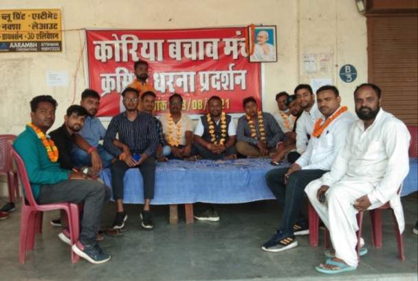 कोरिया बचाव मंच में धरना प्रदर्शन जारी,पाँचवें दिवस भाजयुमो जिलाध्यक्ष अंचल राजवाड़े युवा कार्यकर्ताओं के साथ बैठे धरने पर