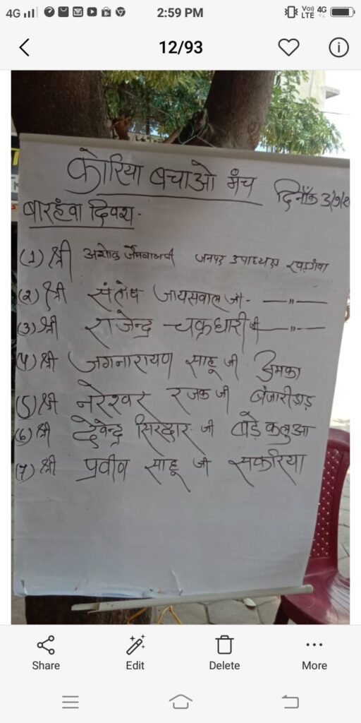 कोरिया बचाव मंच क्रमिक धरना प्रदर्शन… का… 12 दिन हम अपना अधिकार लेकर रहेंगे प्रदेश के मुखिया होश में आओ होश में आओ