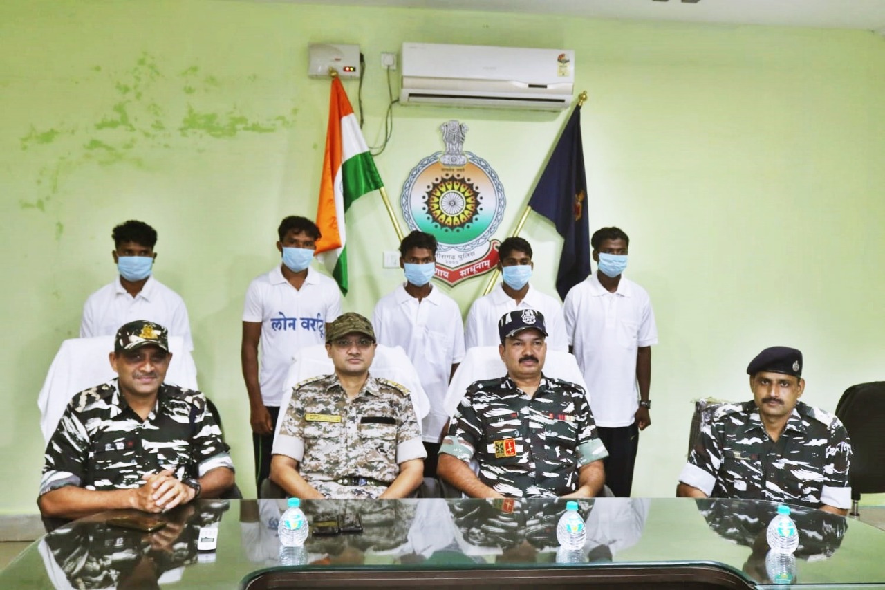 जिले मे चलाये जा रहे नक्सल उन्मूलन अभियान के तहत जिला दंतेवाड़ा के विभिन्न ग्रामों के व्यक्ति जो प्रतिबंधित नक्सली संगठन में सक्रिय है उन्हें आत्मसमर्पण कर सम्मान पूर्वक जीवन यापन करने के लिए थाना /कैम्पों एवं ग्राम पंचायतों में संबंधित क्षेत्र के सक्रिय माओवादियों के नाम चस्पा कर लोन वर्राटू अभियान (घर वापस आईये) चलाया जा रहा एवं डॉ. अभिषेक पल्लव (भा.पु.से.) के द्वारा नक्सली संगठन में सक्रिय माओवादियों से आत्मसमर्पण कर सम्मान पूर्वक जीवन यापन करने के लिए लगातार आह्वान कर अपील किये जाने पर आज दिनांक 06.09.2021 को गंगालूर एरिया कमेटी अन्तर्गत कार्यरत क्रमश: (1) ग्राम गामपुर डीएकेएमएस अध्यक्ष, नहुम उर्फ पोज्जा सोड़ी पिता स्व० भीमा सोड़ी उम्र लगभग 25 वर्ष जाति मुरिया निवासी मद्दूमपारा गामपुर थाना गंगालूर जिला बीजापुर (2) ग्राम गामपुर मिलिशिया कमाण्ड़र , मासा सोड़ी पिता सोना सोड़ी उम्र लगभग 26 वर्ष जाति मुरिया निवासी मंझार पारा गामपुर थाना गंगालूर जिला बीजापुर (3) भैरमगढ़ एरिया कमेटी अन्तर्गत कार्यरत ग्राम बेचापाल मिलिशिया सदस्य, सुकारू राम उर्फ डोगाल कड़ती पिता सुखराम कड़ती उम्र लगभग 21 वर्ष जाति मुरिया निवासी गायतापारा बेचापाल थाना मिरतुर जिला बीजापुर (4) गंगालूर एरिया कमेटी अन्तर्गत कार्यरत ग्राम गामपुर मिलिशिया सदस्य, राकेकश मड़कम पिता कुम्मा मड़कम उम्र लगभग 18 वर्ष जाति मुरिया निवासी मद्दूमपारा गामपुर थाना गंगालूर जिला बीजापुर (5) मलांगेर एरिया कमेटी अन्तर्गत कार्यरत ग्राम बेड़मा मिलिशिया सदस्य, भूपेन्द्र कुमार सोड़ी पिता स्व० मुक्का सोड़ी उम्र लगभ 19 वर्ष जाति माडि़या निवासी मंझारपारा बेड़मा थाना कुआकोण्ड़ा जिला दन्तेवाड़ा ने लोन वर्राटू अभियान (घर वापस आईये ) तथा माओवादी संगठन के खोखली विचारधारा से तंग आकर एवं छत्तीसगढ़ शासन के पुनर्वास योजना से प्रभावित होकर समाज के मुख्यधारा से जुड़कर विकास में सहयोग करने की इच्छा व्यक्त करते हुए पुलिस उप महानिरीक्षक (परिचालन) सी०आर०पी०एफ दंतेवाड़ा श्री विनय कुमार सिंह , श्री सुरेन्द्र सिंह कमाण्ड़ेंट 231 बटालियन , डॉ. अभिषेक पल्लव (भा.पु.से.) पुलिस अधीक्षक दन्तेवाड़ा , श्री मृत्युजंय कुमार उप कमाण्डेंट 231 बटालियन , श्री राजेन्द्र जायसवाल (रा.पु.से.) अतिरिक्त पुलिस अधीक्षक दन्तेवाड़ा एवं उप पुलिस अधीक्षक कमलजीत पाटले (रा.पु.से.) के समक्ष आत्मसमर्पण किया । उपरोक्त माओवादियों के आत्मसमर्पण में कमाण्डेंट 231 बटालियन श्री सुरेन्द्र सिंह के०रि०पु०बल मुख्यालय जावंगा का विशेष योगदान रहा है।